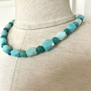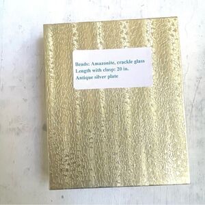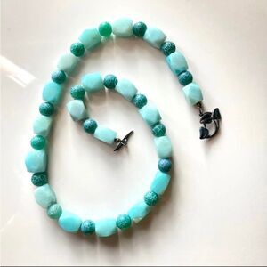 Blue Amazonite and crackle glass silver plated necklace and earrings set