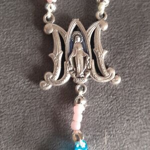 Blue And Pink With Fetus Bead Silver Rosary