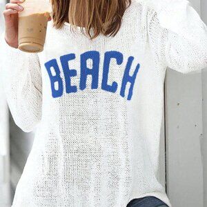 Blue And White Casual Women's Letter Pattern Long Sleeve Loose Knit Sweater
