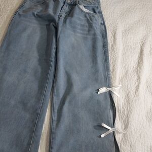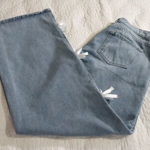 Blue Ankle Cropped Jeans with Side Ties Size 11