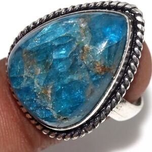 Blue Apatite 925 Silver Plated Natural Gemstone Handmade Ring US Size 8 Unisex
