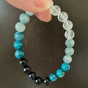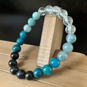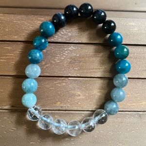 Blue Apatite, Angelite, Tigerseye & Quartz Natural Stone Crystal Beaded Bracelet