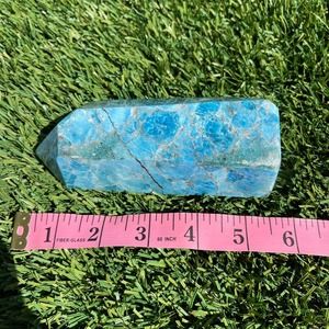 Blue apatite tower. Approx 5.5” x 3.25” and 1 lb 14oz (850g).
