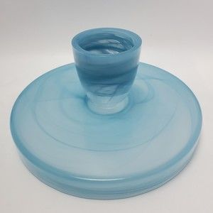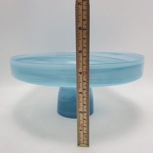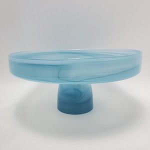 Blue Art Decor Raised Pedestal Platter Plate Cake Stand Wt 4 Ice Cream Wine Cups