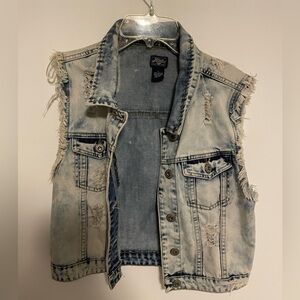 Gently worn. No major defects. Has the distressed look. Size large. From a pet friendly home.