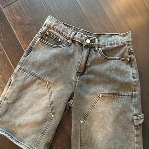 These stylish gray jean shorts from Blue Asphalt feature a relaxed fit and a high-waisted design, perfect for a casual, laid-back look. The distressed detailing adds a trendy, vintage touch to your outfit.