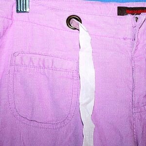 Add a pop of color to your wardrobe with these charming purple corduroy pants by Blue Asphalt. These comfortable pants feature a relaxed fit with a straight or slight bootcut leg and a functional drawstring closure at the waist, allowing for an adjustable fit. The corduroy fabric adds a touch of texture and vintage appeal. The drawstring does show a little wear, as noted. With a 32-inch inseam, these pants are perfect for a casual day out, a cozy fall look, or adding a touch of Y2K style.