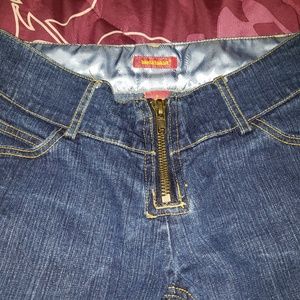 Blue Asphalt Women's Capri Jeans. Size 5 Cotton 14% Polyester 2% Spandex Zipper front Front and Back Pockets. Also side pockets. Does have some distress. Waist 15", Rise 7", and Length 22 1/2". Does have some distressing to jeans.