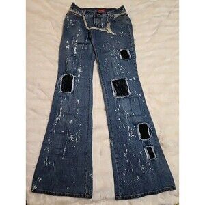 Blue Asphalt Womens Vintage Y2k Jeans Size 3 Paint / Black Lace / Chain Detail