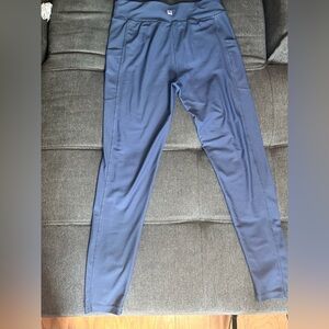 These blue leggings are crafted from a smooth, moisture-wicking material, offering a comfortable fit for any activity. The elastic waistband ensures a secure and flexible fit, making them ideal for both athletic and casual wear. Their simple, clean design makes them a versatile addition to any wardrobe.