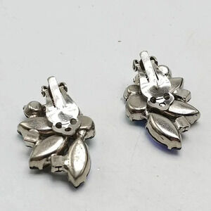 Blue Aurora Borealis Navette Rhinestones Leaf Clip-On Earrings