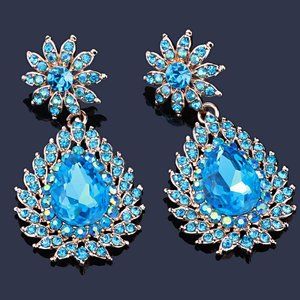 Blue Austrian Crystal Formal Sparkle Earrings Pageant Prom Formal Bridal