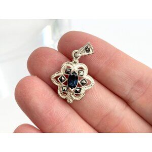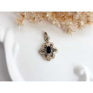 Beautiful sterling silver vintage pendant. The center marquise cut gemstone is azurite with smaller square shaped marcasite. Art deco with tiny little milgrain along the perimeter. Gorgeous piece.