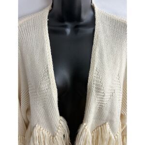 Blue B Collection Cream Beige Cardigan Chunky Knit Sweater Size S Fringe Boho