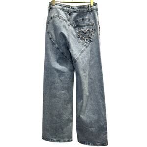 Blue B. Collection – Rhinestone Cutout Wide-Leg Jeans – Medium