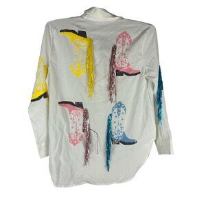 Blue B Collection Womens Long Sleeve Cowboy Boot Print Shirt White Multi Size S