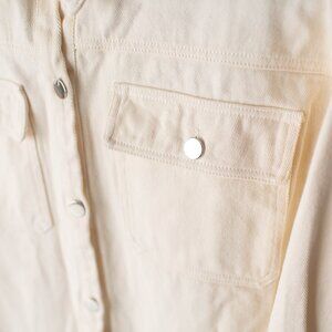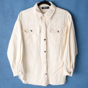Blue B Collection Women’s Oversize Small “Rock & Love” Cream Denim Jacket Coat