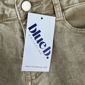 These tan bell-bottom jeans from Blue B Collection offer a stylish, vintage-inspired look. Made from breathable cotton with a touch of spandex for comfort, they feature a unique frayed hem.