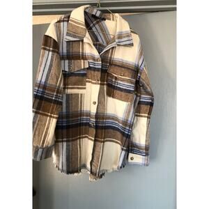 Blue B Collection shacket button up shirt size M ravelled hem long sleeve