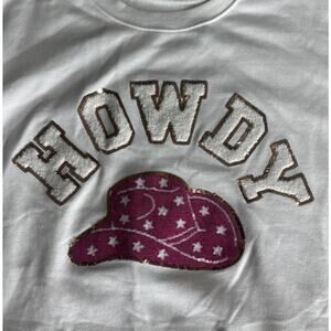 Blue B Howdy Sweatshirt White Pink Sequin Cowboy Hat Western Graphic Size L