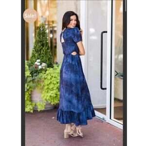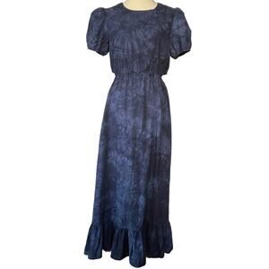 Blue B Maxi Cutout Dress Tie Dye Blue Boho Puff Sleeves Ruffles Size Large