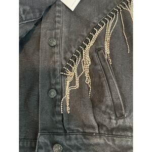 Blue B Rhinestone Fringe Denim Jacket Size Small Black Western Concert