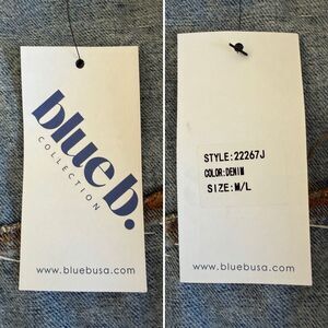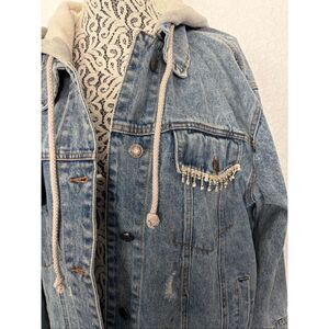 Blue B Rhinestone Fringe Denim Jacket with Hoodie Blue Size M/L
