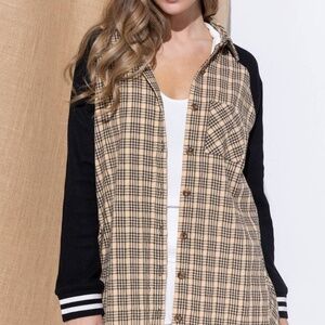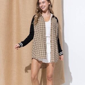 Blue B Tunic black and tan Plaid Loose Fit Colorblock Knit Shirt Jacket Shacked