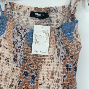 Elevate your wardrobe with this charming Blue B patchwork print sundress, brand new with tags and available in multiple sizes. Featuring a lightweight, flowy fabric with adjustable spaghetti straps and a tiered skirt, this dress combines comfort and boho-inspired style. The soft pastel tones of peach, cream, and blue make it perfect for casual outings, picnics, or vacation wear. Pair it with sandals or sneakers for an effortlessly chic look.