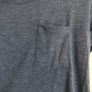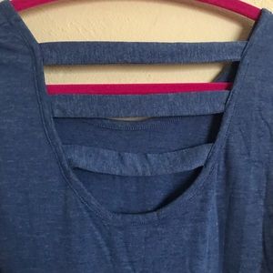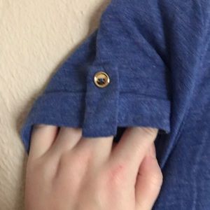 Blue tee shirt top with bar design on back. Button detail on the sleeves. Great condition!