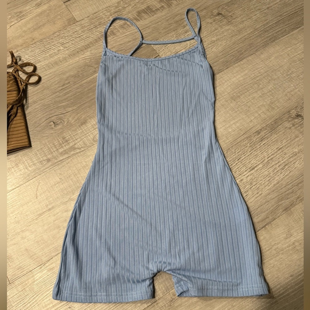 Size small blue backless romper never worn before