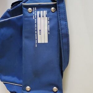 Vintage 1960s Stylish and durable blue backpack featuring the logo. Perfect for travel and everyday use.
