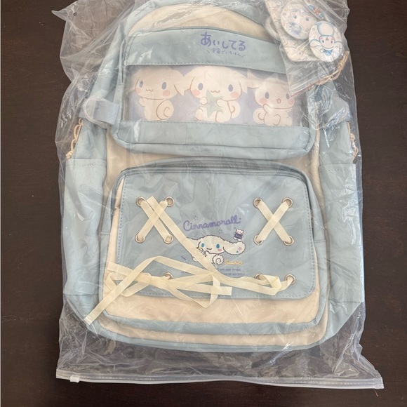 Charming backpack in a delightful blue shade. Perfect for adding a touch of whimsy to your style.