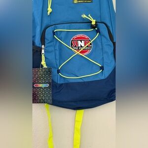 Stylish blue backpack with vibrant yellow accents, perfect for everyday use. Features a spacious interior and durable design.