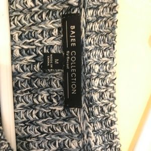 It's a warm, wonderful knit sweater. It has light pilling. Small slits on the sides