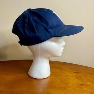 Stylish blue baseball cap featuring a distinctive white logo. Perfect for casual outings and adding a sporty touch to your look.