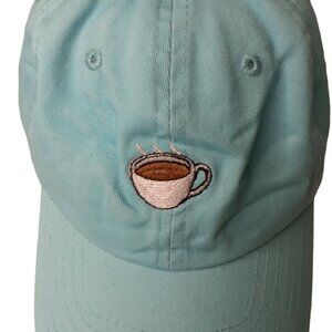 Blue Baseball Hat Embroidered Coffee Cup Adjustable Strap Back Cap