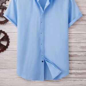 Blue Basic Men's Button Up Shirt
