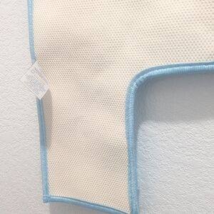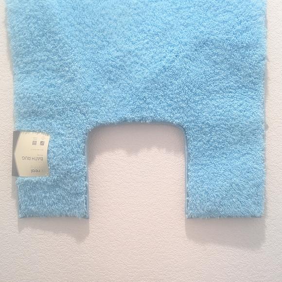 Enhance your bathroom with this plush blue bath mat. Its soft texture provides comfort and style.