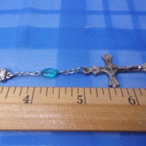 Blue plastic bead silver tone chaplet prayer beads, unknown maker, nice condition, this one is not a bracelet, it is a hand held prayer piece, very pretty.