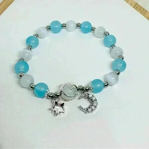 Blue Beaded Bracelet with Moon charm fancy statement bracelet