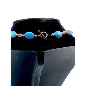 Blue Beaded Necklace & Bracelet Set For Women Opalite & Glass Beads