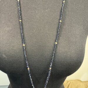 Blue Beaded Necklace Cross Pendant Gold Detail Adjustable Lobster Clasp Chain