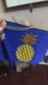 Stylish blue beaded clutch featuring a vibrant yellow pineapple design. Perfect for adding a pop of color to any outfit.