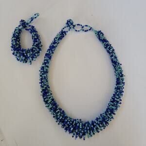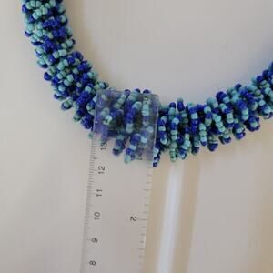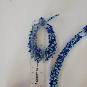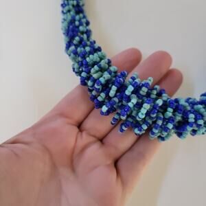 Blue Beaded Statement Necklace Chunky Seed Twist Collar Boho Festival Jewelry