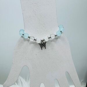 Blue Beaded w/ Sparkly Butterfly Charm Bracelet - Small wrists