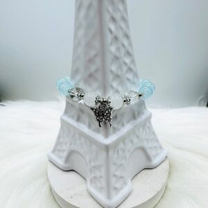 8mm blue beaded bracelet with a cute rhinestone butterfly charm