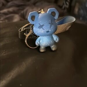 Cute blue bear keychain with a strap. Perfect for bags or keys.