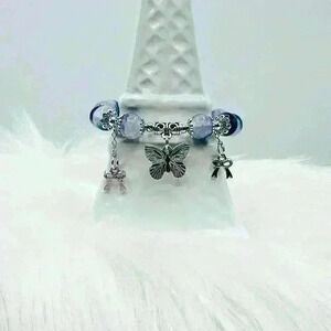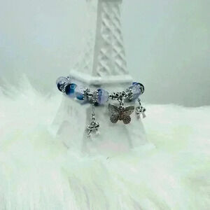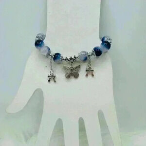 Blue Berry Gradient Glass Bead Bracelet with Butterfly Charms