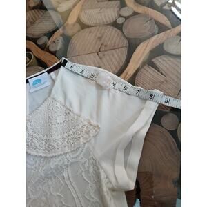 Blue Betty Bohemian Lace Blouse Off White Sheer Teired Tunic Top Medium, in good pre-owned condition: no holes, no stains, minor wear, size tag is pinned on, no material tag. has been recently cleaned, may be stale from storage. Marked as a women's medium, measurements are taken while laying flat and are approximate: (see photos)